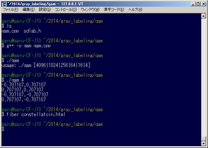 平均電力が1のQAM信号を生成するC++のソースコードです。Average energy in a QAM constellationを参考に作りました。 サンプルプログラムの使い方 †