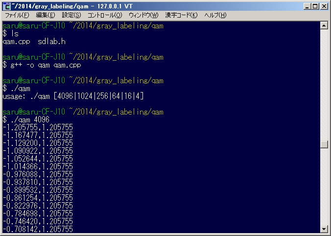 ↑は行列qamに入っている値をプロットする処理です。 サンプルプログラムの動かし方 †