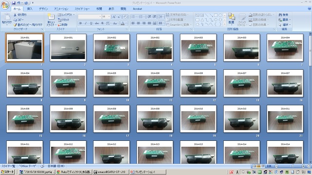 解説 †ディレクトリ「/data/picture/2015」にある「*.jpg」にマッチする画像ごとにPowerPointのページを作って片っ端から画像を張り付けていくプログラムです。 PowerPointのページタイトルは連番を振ってます。 何に使っているかは秘密です... ポイントはページサイズをcmからピクセル(pixel)に変換しているところです。 Win32OLEではPowerPointのサイズとか画像の位置をpixelで扱っているのですが、アプリだとcmで扱っているのでppc (pixel per cm)の単位を出して変換してます。 参考にしたのは。 https://davis.gfd-dennou.org/rubygadgets/ja/?(Tips)+PowerPoint+%A5%D5%A5%A1%A5%A4%A5%EB%A4%CE%BC%AB%C6%B0%C0%B8%C0%AE とVBAPPT9.CHM。 追記 (2015/02/09) †PHPでも結構簡単にWIN32OLEを使えることが判明。PHPでディレクトリにある画像を片っ端からPowerPointに貼り付け ソースコード †require 'win32ole'
