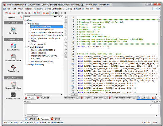 - 新しくpcoreとシステムをつなぐため,system.mhsを変更するため,"Project"タブ > "Project Files"の中にあるsystem.mhsをダブルクリック.